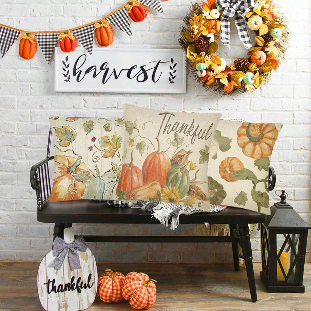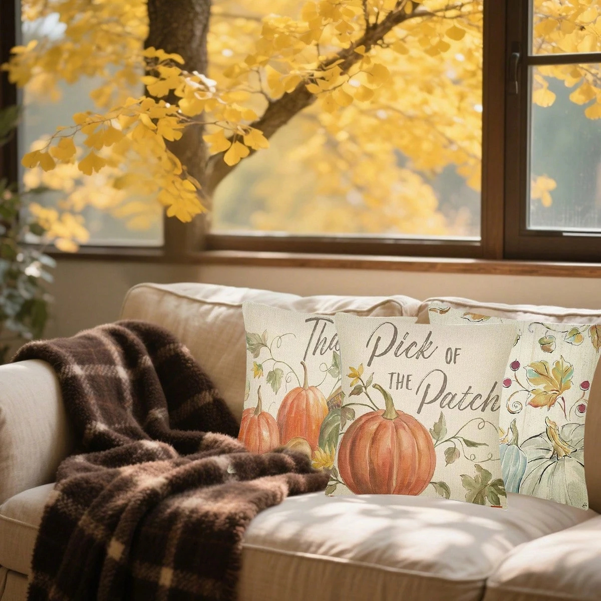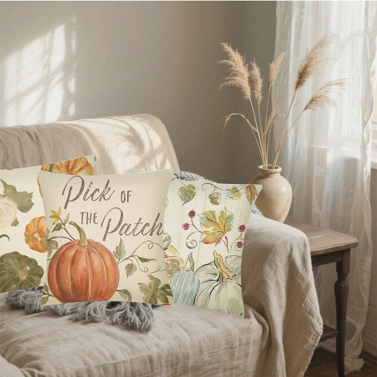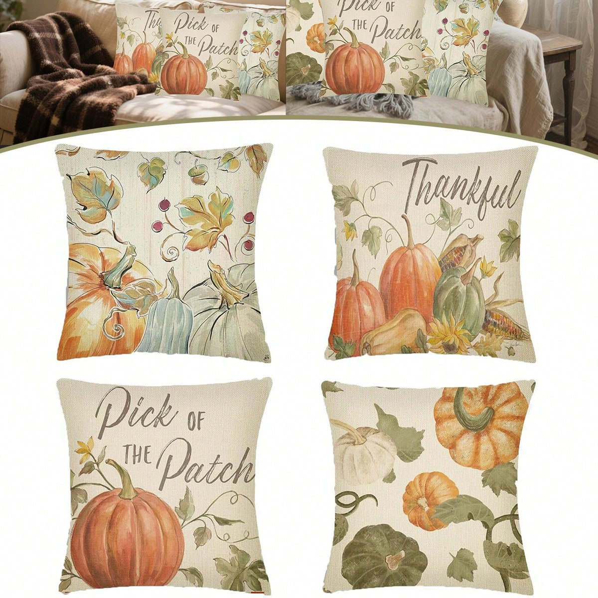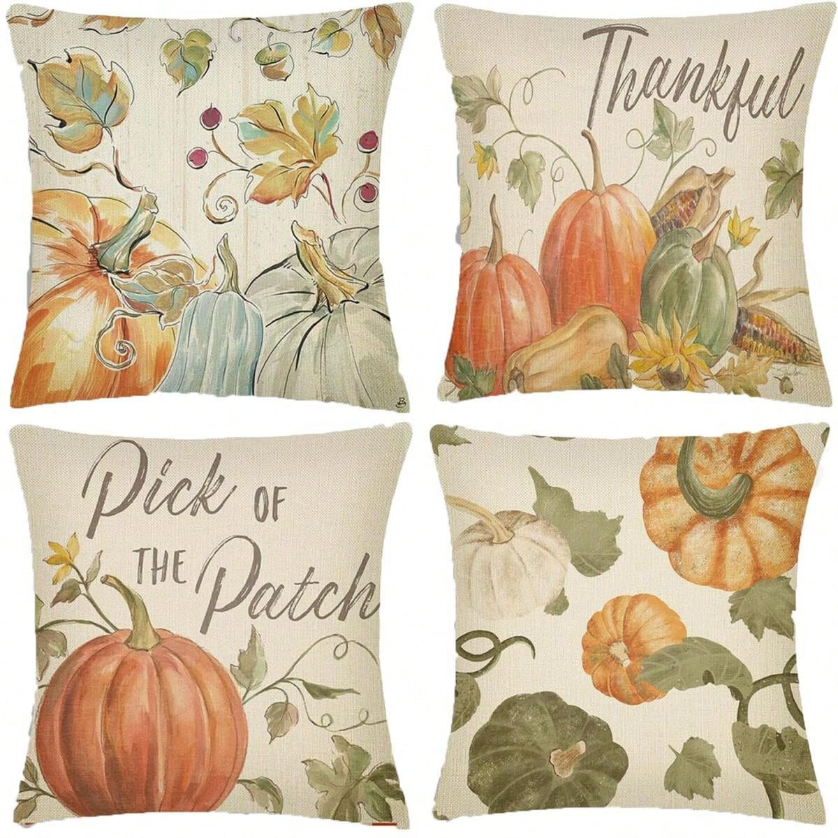 Fall Pillow Covers Set Of 4 Pumpkin Pick Of The Patch Thankful Pattern Autumn Throw Pillow Covers Thanksgiving Watercolour Outdoor Farmhouse Pill